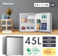 家電  箱無し ハイセンス 小型 45L 1ドア 冷蔵庫 直冷式 シルバー HR-A45S